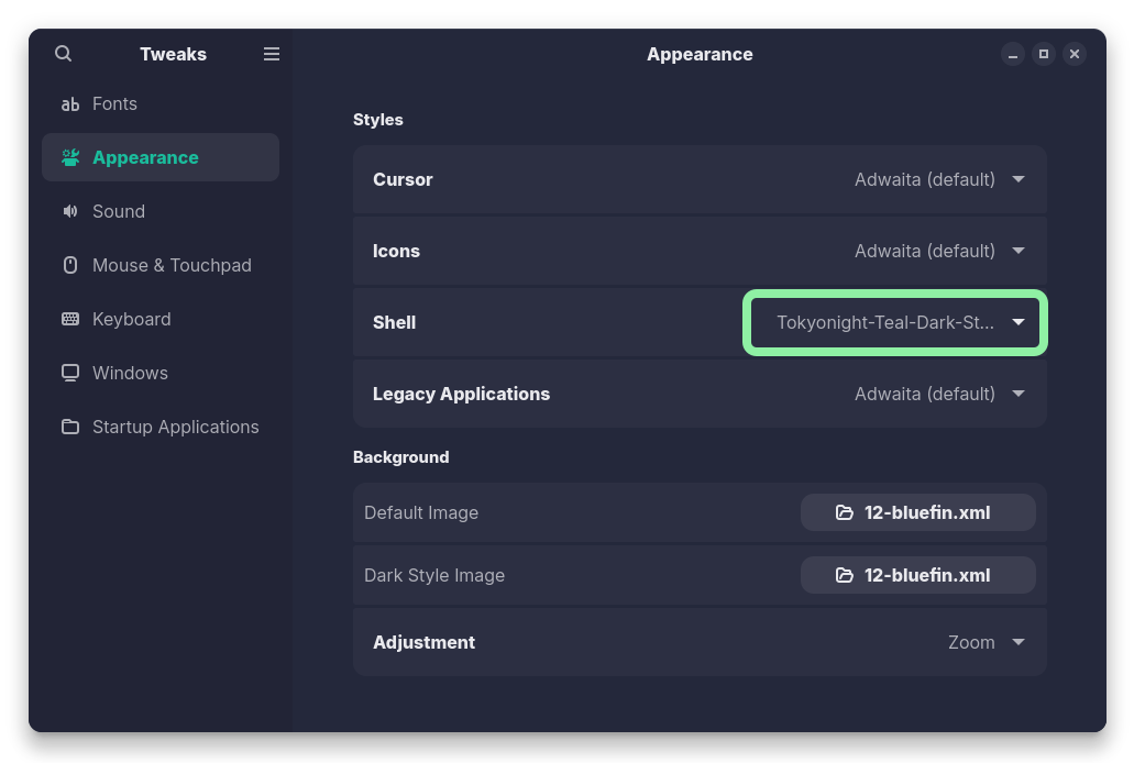 這是最簡單的改法,只要在wayland之下,就會套用GTK/Qt主題,至Pling或Gnome-Look下載你喜歡的主題並依照指示安裝,以下以Fedora(Gnome)與Tokyonight GTK Theme為例: