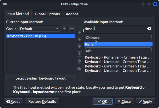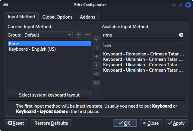 Fcitx5 + Rime + 洋蔥輸入方案 = 超級中文輸入法¶