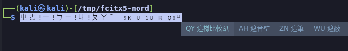 如果使用X11(wayland硬要也可以),就只能安裝fcitx原生主題,以下以Kali(Xfce)與fcitx5-nord theme為例: